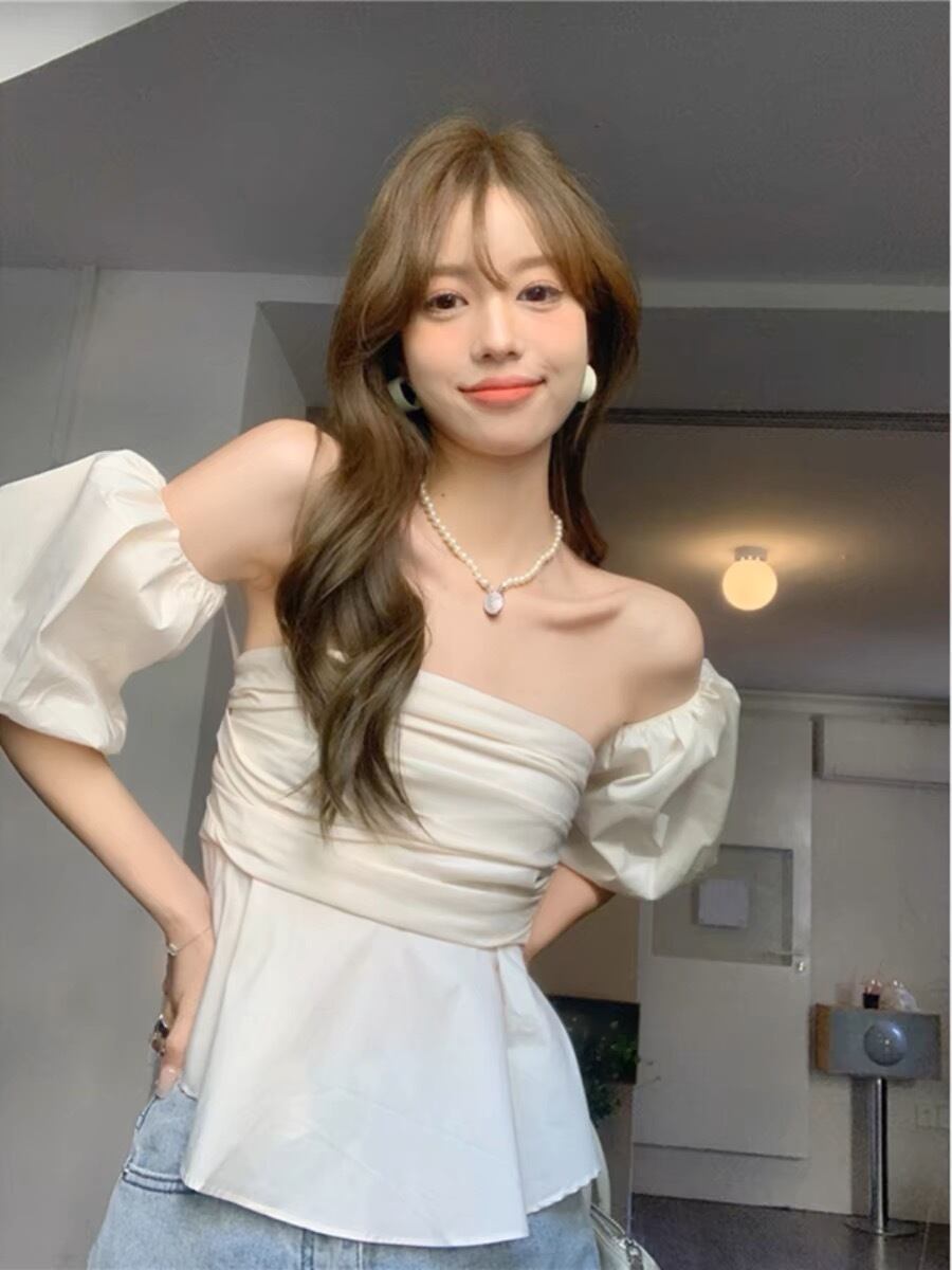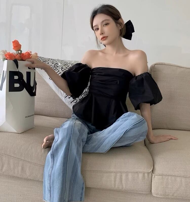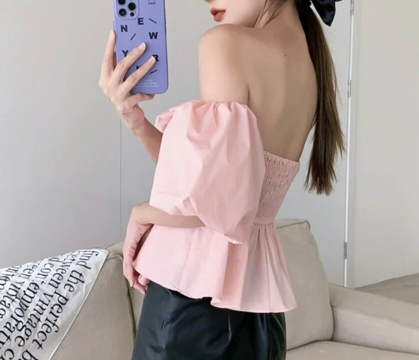 オフショルダーパフスリーブトップス