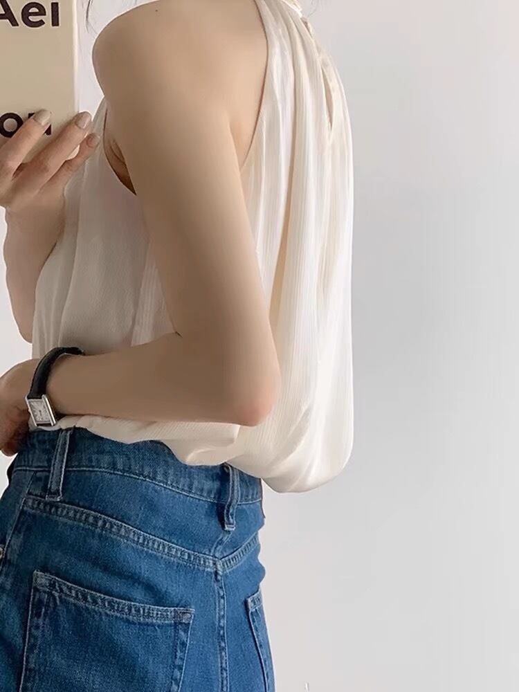 ホルターネックノースリーブブラウス