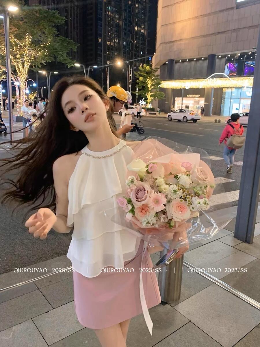 ノースリーブフリルビジュートップス