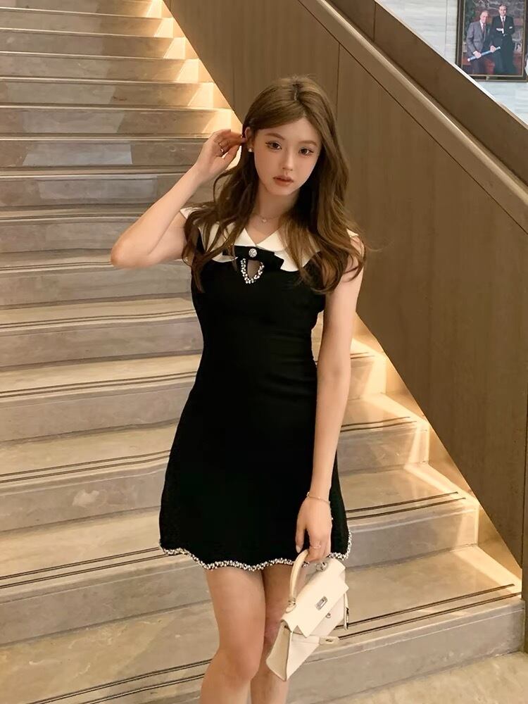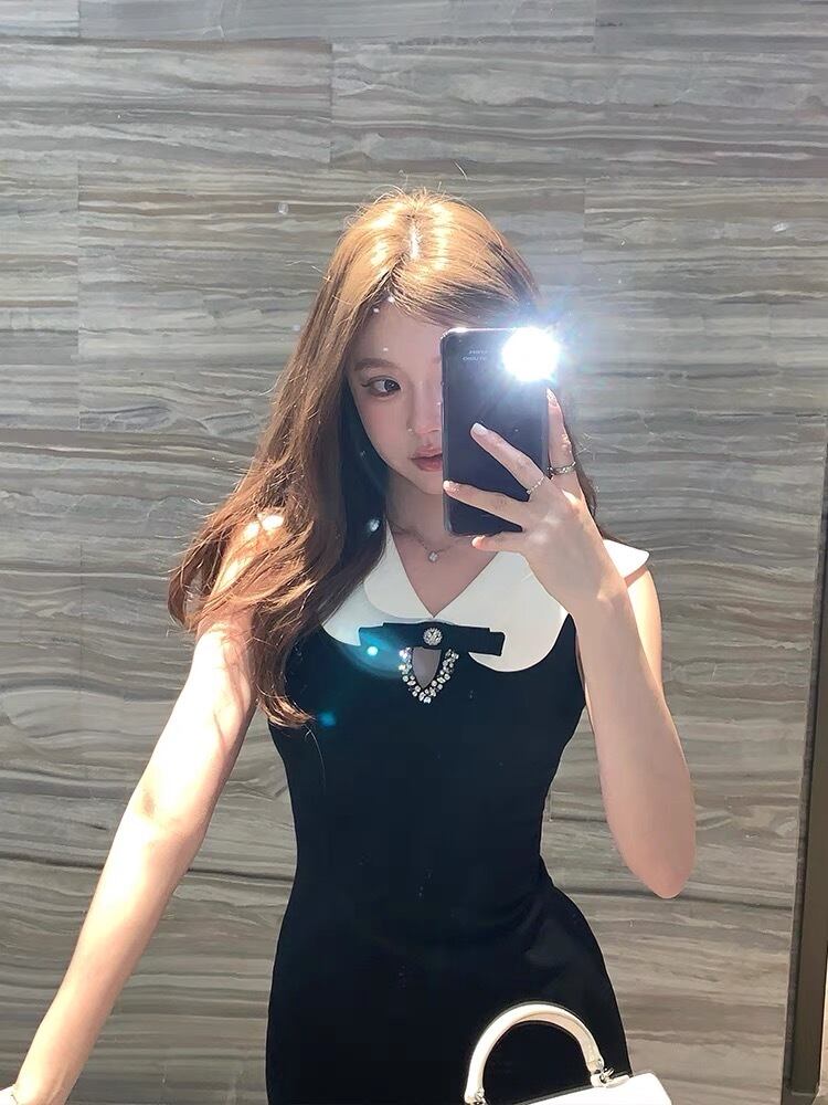 丸襟ブラックワンピース